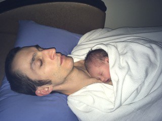 So Tuesday around 10:30 PM, we’re in bed watching little Poebe (that’s what we call her) move around, and Eva’s stomach starts getting hard. They were obviously contractions, but they weren’t painful, so we thought they were Braxton hicks. So we go to bed. As I’m dozing off around 11 PM, I vaguely hear a pop-whoosh. Eva sits up and says, “I think my water just broke.” I sat up and said, “I forgot everything. What do we do now?”