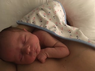 That’s when I gave a final grunting push, and my daughter (all 6 pounds 13 ounces of her) was born. The nurses placed her on my chest, and she looked up at me, cooing. Only a few minutes old, and she was so alert!